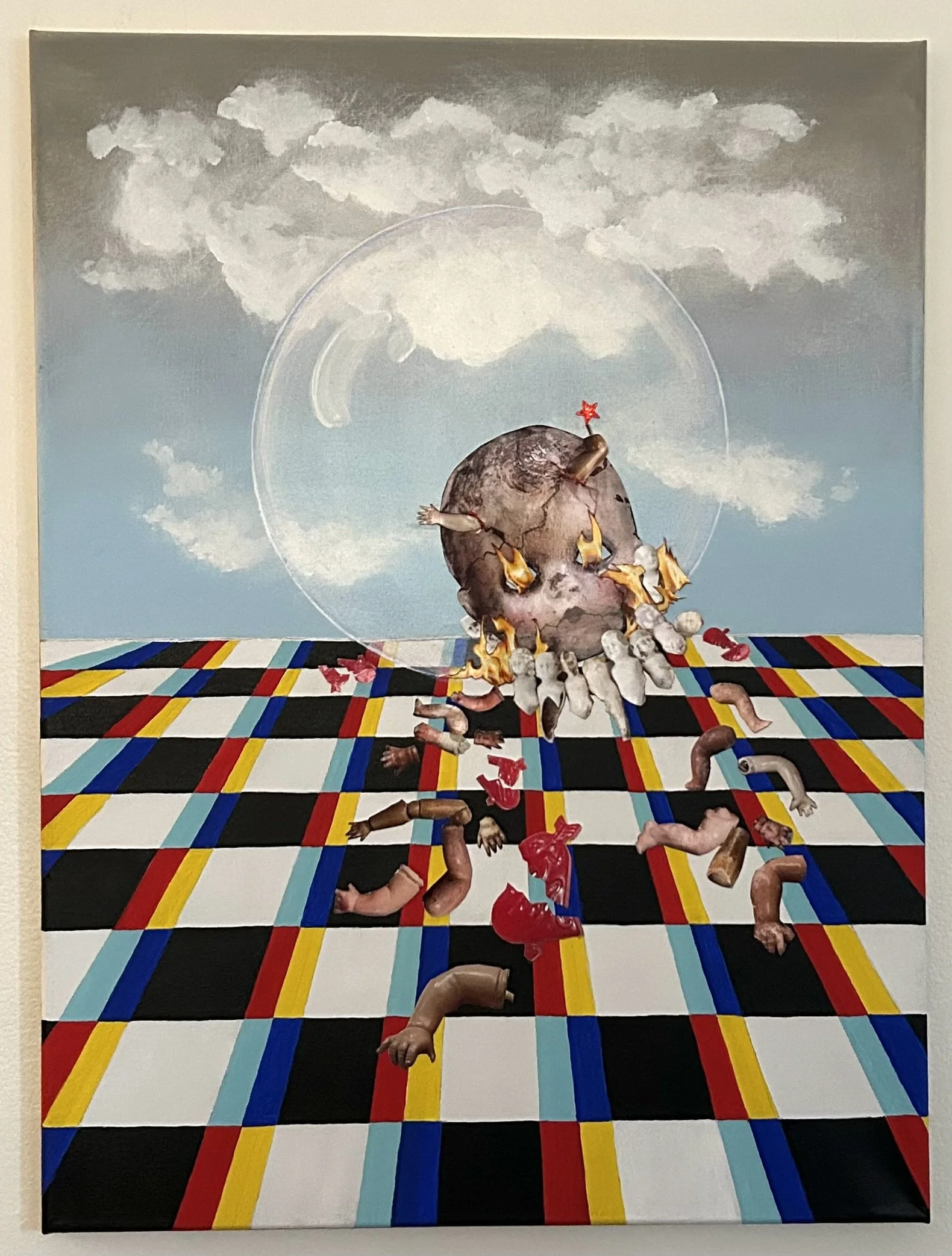 My art is reflective of my (at times) warped and cynical view of our daily lives- what we hear and see/what shapes our perceptions and discord. I have pretty strident opinions and my pieces help to exorcise those demons.